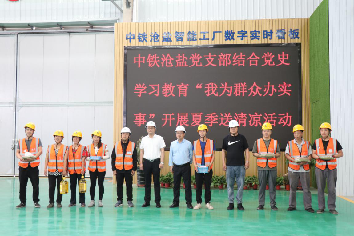 來源:中鐵滄鹽6月15日,河北中鐵滄鹽建筑科技有限公司結(jié)合黨史學(xué)習(xí)教育“我為群眾辦實(shí)事”,公司領(lǐng)導(dǎo)班子深入生產(chǎn)一線慰問奮戰(zhàn)在高溫作業(yè)一線的干部職工,為他們?cè)谘籽紫娜账蜕弦环荨扒鍥觥薄?/span>