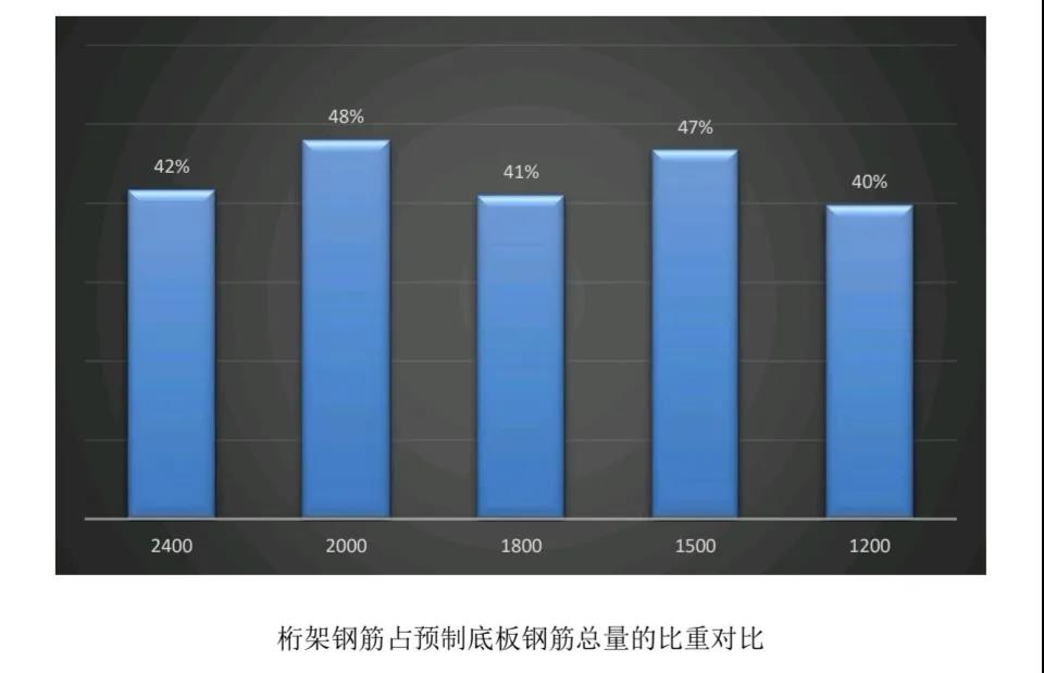 厚度為60mm的預(yù)制單向板底板,桁架鋼筋占預(yù)制底板鋼筋總量的比重如下表: